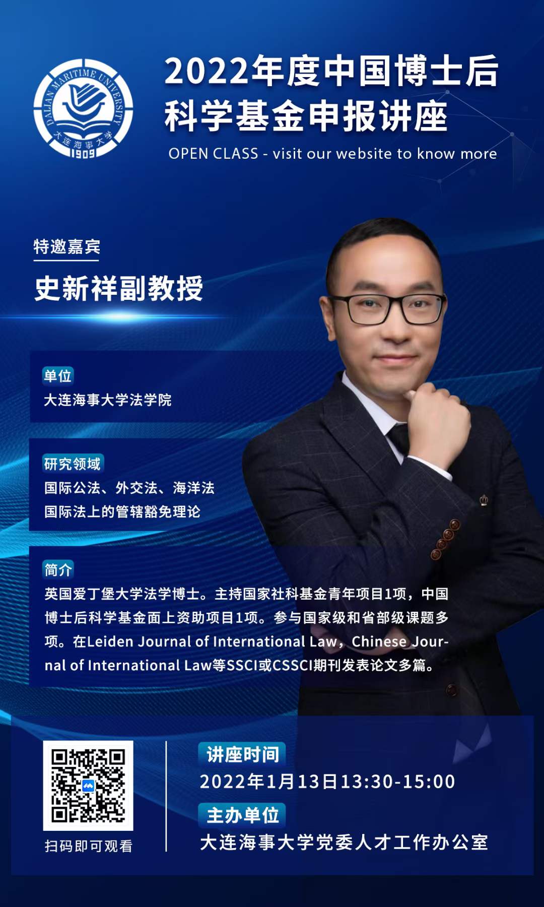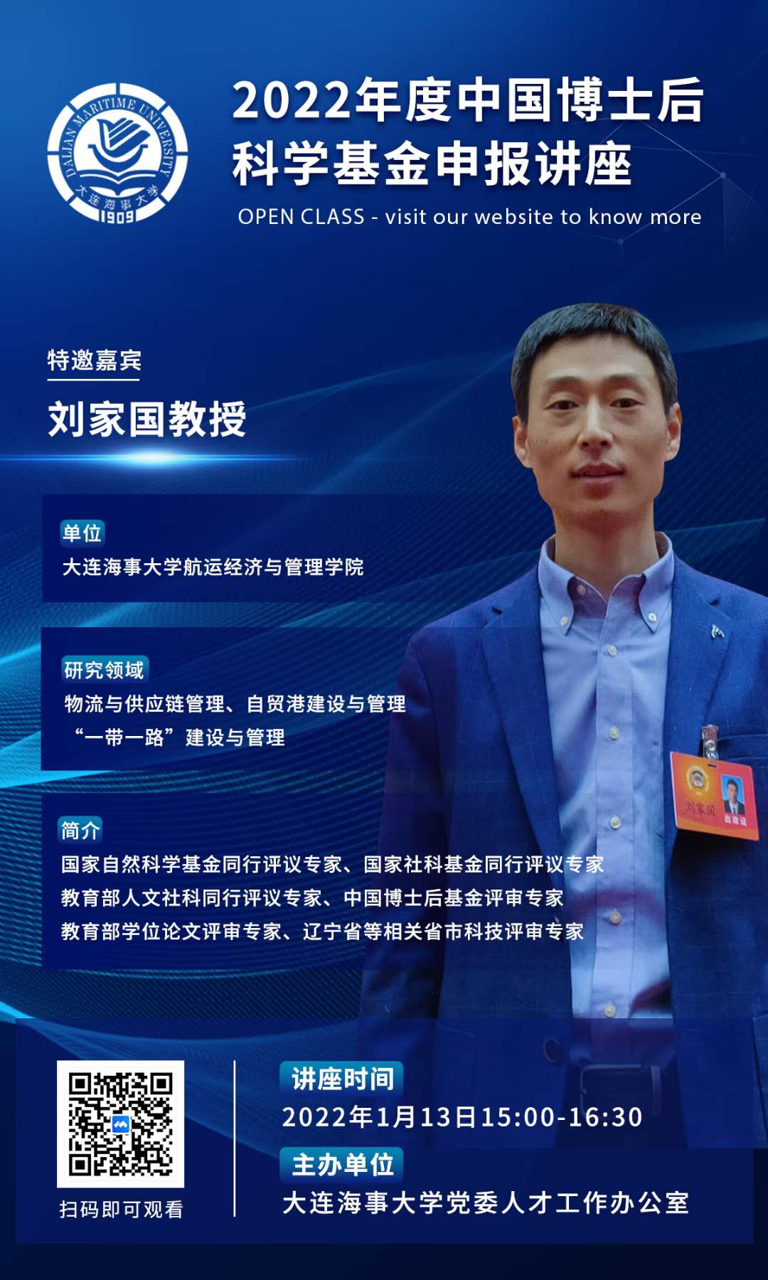 报告摘要:为推进2022年中国博士后科学基金申报工作,帮助博士后教师解决基金申报过程中的难点和困惑,提高项目申请书的撰写质量,增强评审竞争力,特邀请航运经济与管理学院刘家国教授和法学院史新祥副教授做有关中国博士后科学基金申报的专题讲座。